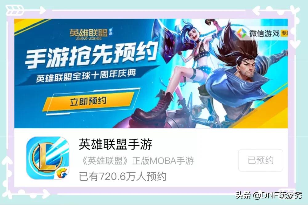 (1)英雄联盟手游于10.16日正式开启预约,玩家们可以在微信的新游里面点击预约游戏,截止目前,仅一天半时间,预约人数已经突破720万了,可见这个IP在玩家们心目中的地位。