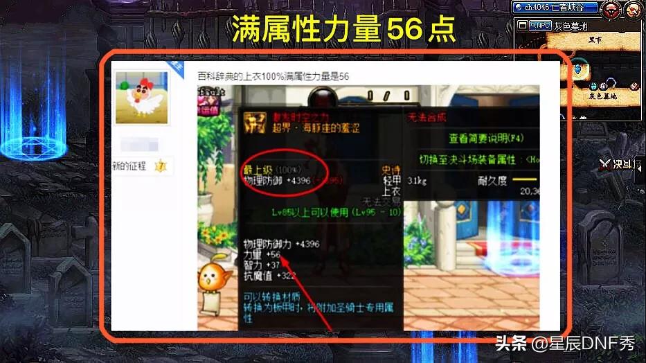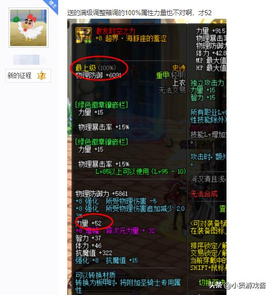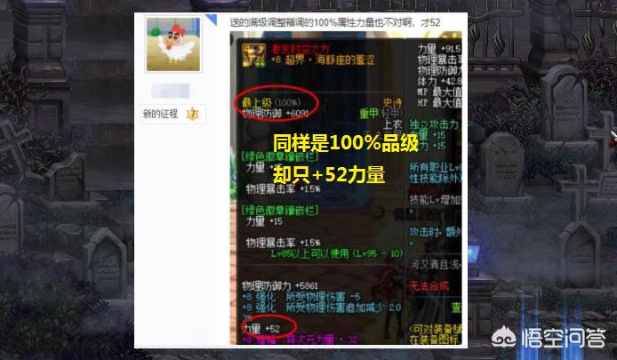 DNF玩家对100%属性产生质疑,装备词典超界轻甲上衣有56力量自己却只有52力量,如何