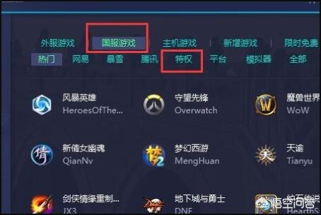 2、接下来,在游戏列表中,点击选择国服游戏,会出现“特权”菜单,点击该菜单。