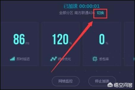 5、游戏加速之后,会在软件主页面中显示网络加速详情,点击“切换”按钮,开始切换网络节点。