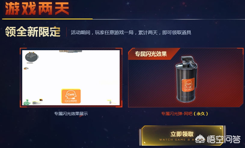 在活动期间,玩家每天登陆游戏并且玩一局累计两天之后,就可以到活动页面领取专属奖励,就是这个专属闪光弹-网吧(永久),外观不出奇就是一个闪光弹。