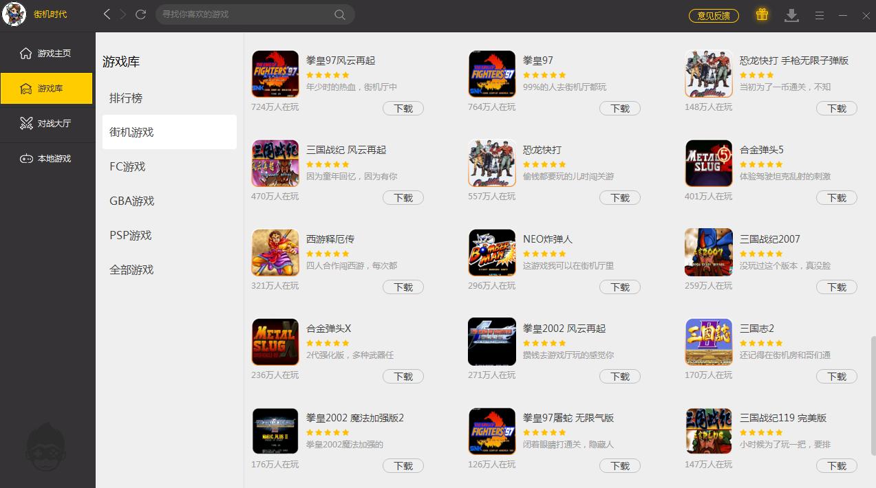 在这个平台,《街头霸王2》、《拳皇》系列、《三国战纪》《恐龙快打》已经诞生了不少游戏明星,相信还会有更多的新星加入