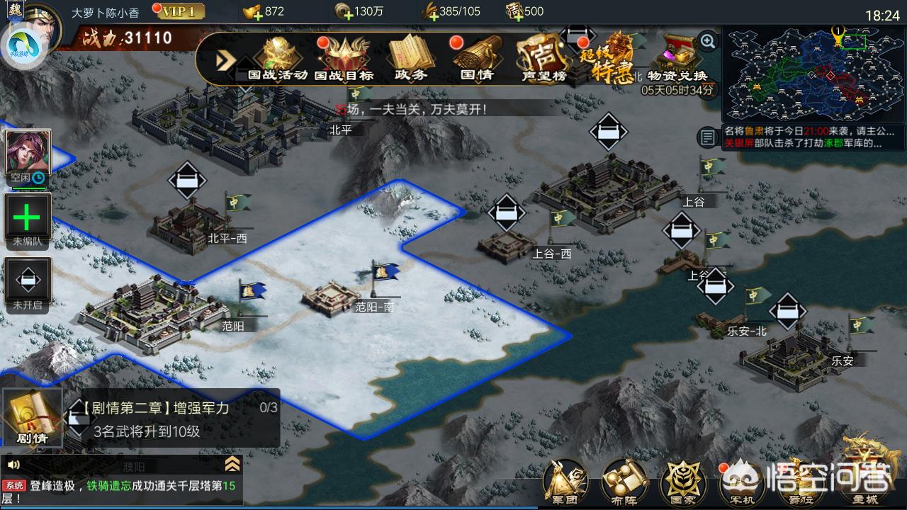 这是个新手游,最近刚上线运行的。这个游戏则是完全抛弃了建设和养兵这两种让人们头疼的事,将重点放在武将养成和攻城国战上面。