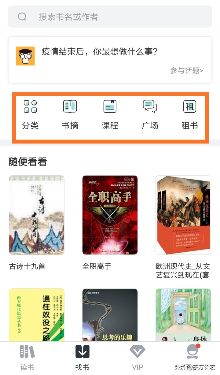 2、今日头条客户端,点我的,然后常用功能中有个书架,往下刷,可以选自己喜欢看的书。