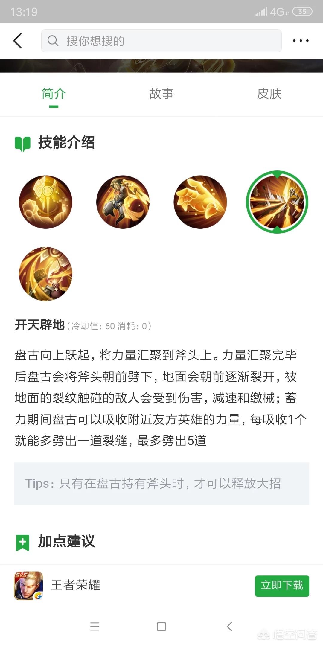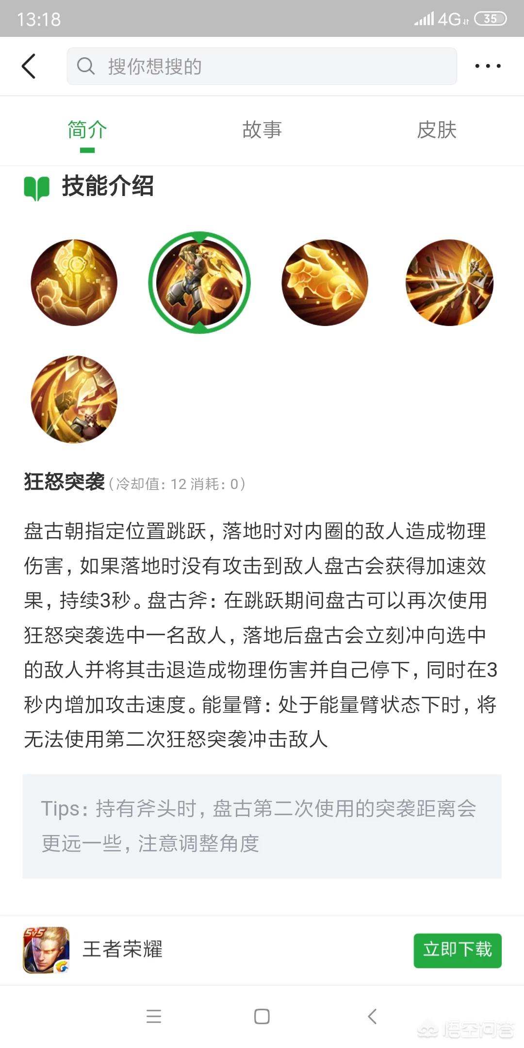 技能:主2副1,有大点大。盘古的连招技巧是1-2-3,也有1-3-2,1技能跳上去后开2技能控制敌人,然后接着用大招减速敌人,空隙时间用普通攻击叠加被动。