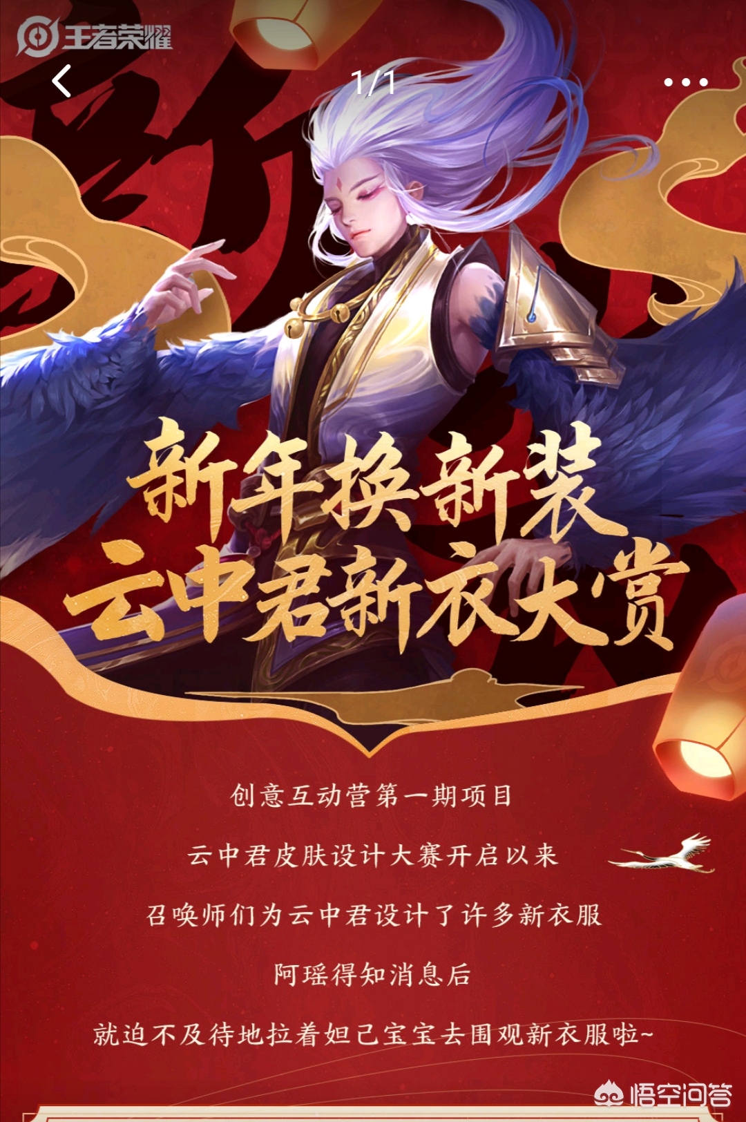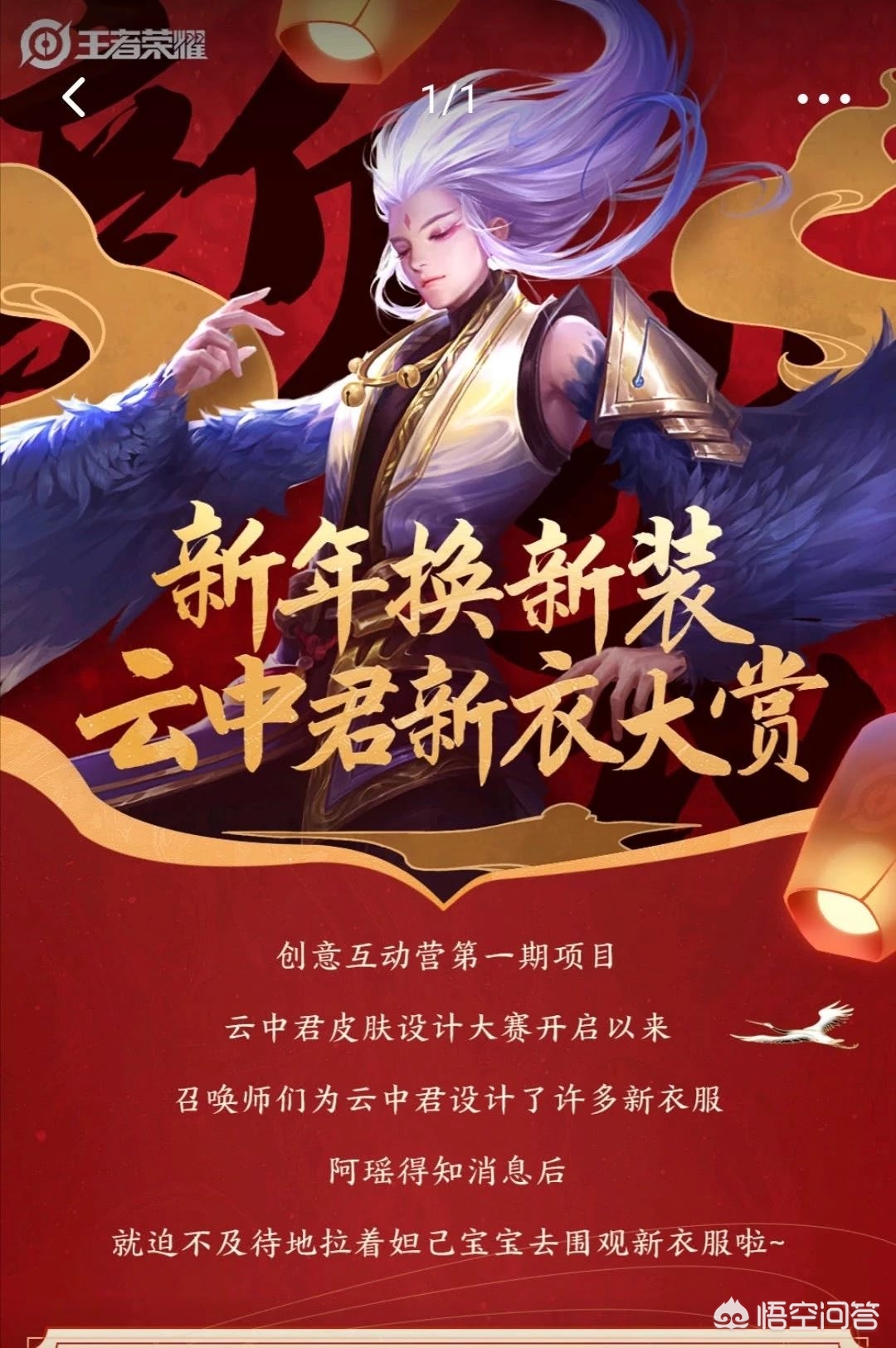 王者荣耀春节活动来袭,送六款永久皮肤,有云中君的玩家赚大,你期待吗