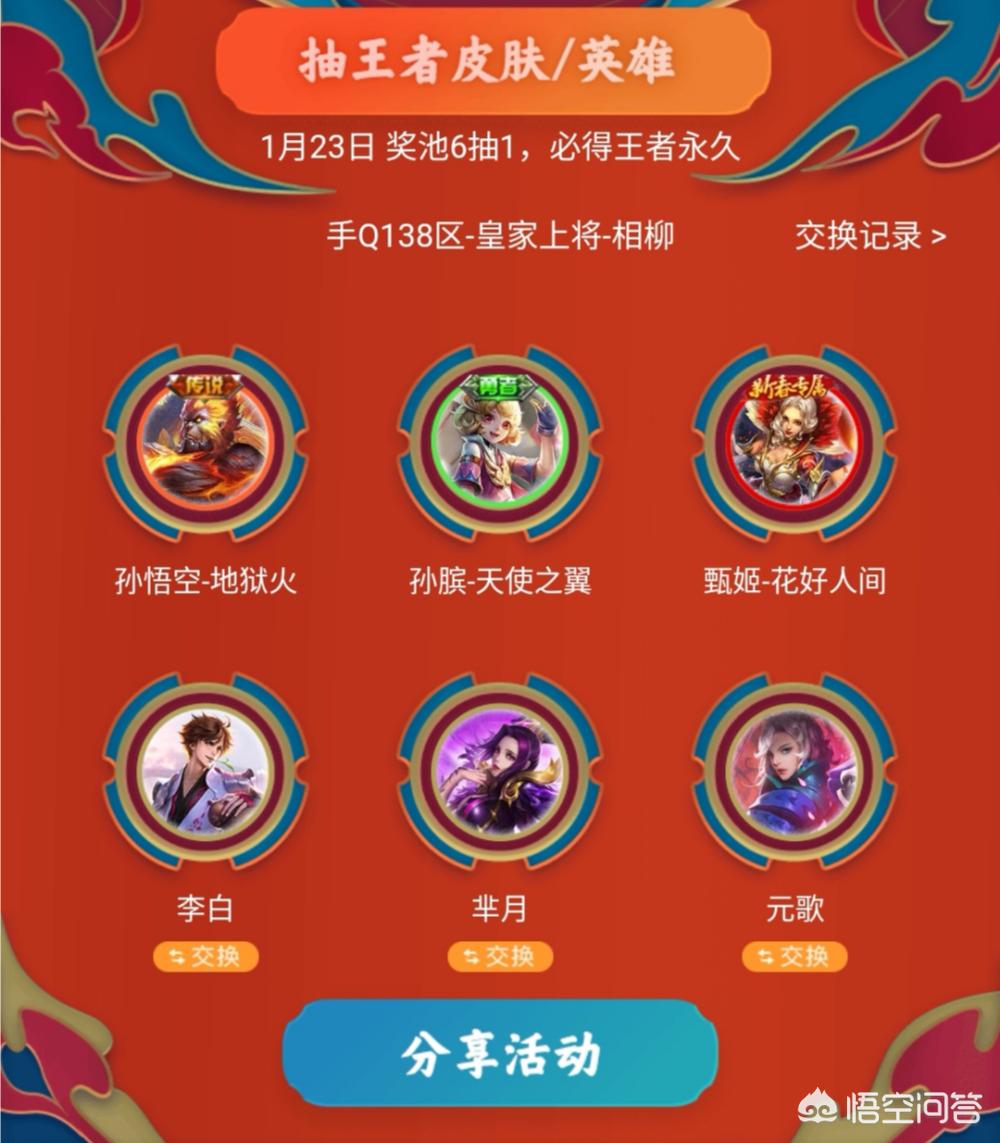 在微信区推出“摇心愿”抽永久皮肤活动就有玩家在问:QQ区有没有这样的活动呢?毕竟QQ区的玩家是比微信区玩家要多的,在这里我告诉大家是有的!该活动在QQ游戏区名为“过年,有王者”也是明日开启,玩家登录QQ在游戏那一栏点进去即可看到活动!大致形式是和微信区一样的,玩家最多可解锁6个奖池,奖池中共计91款英雄、以及95款皮肤,玩家根据自己的喜好添加到自己的奖池,不过需要注意的是该活动是需要好友间的相互解锁才行,其中6个奖池中必得一。