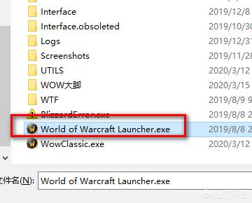 5、最后在魔兽世界怀旧服的安装目录下,找到World of Warcraft Launcher.exe。点击打开,最后点击确定即可。