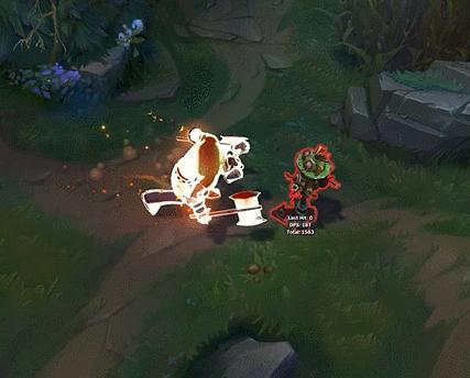 叫铁哥们皮肤!重做特效后可以看到完全变了一个样子,首先看一下E的特效,以前就是一个闪电,然后就没了,现在闪电特效之后,还会出现一个新的冒烟的特效,看起来比老版本的好看太多了。