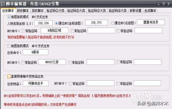 第一步:打开传奇挂机脚本编辑器(木剑相逢辅助专用),选择你玩的对应的服的种类,如果是内挂/3K/HGE引擎的点击坐标,LEG引擎的点击右边进入