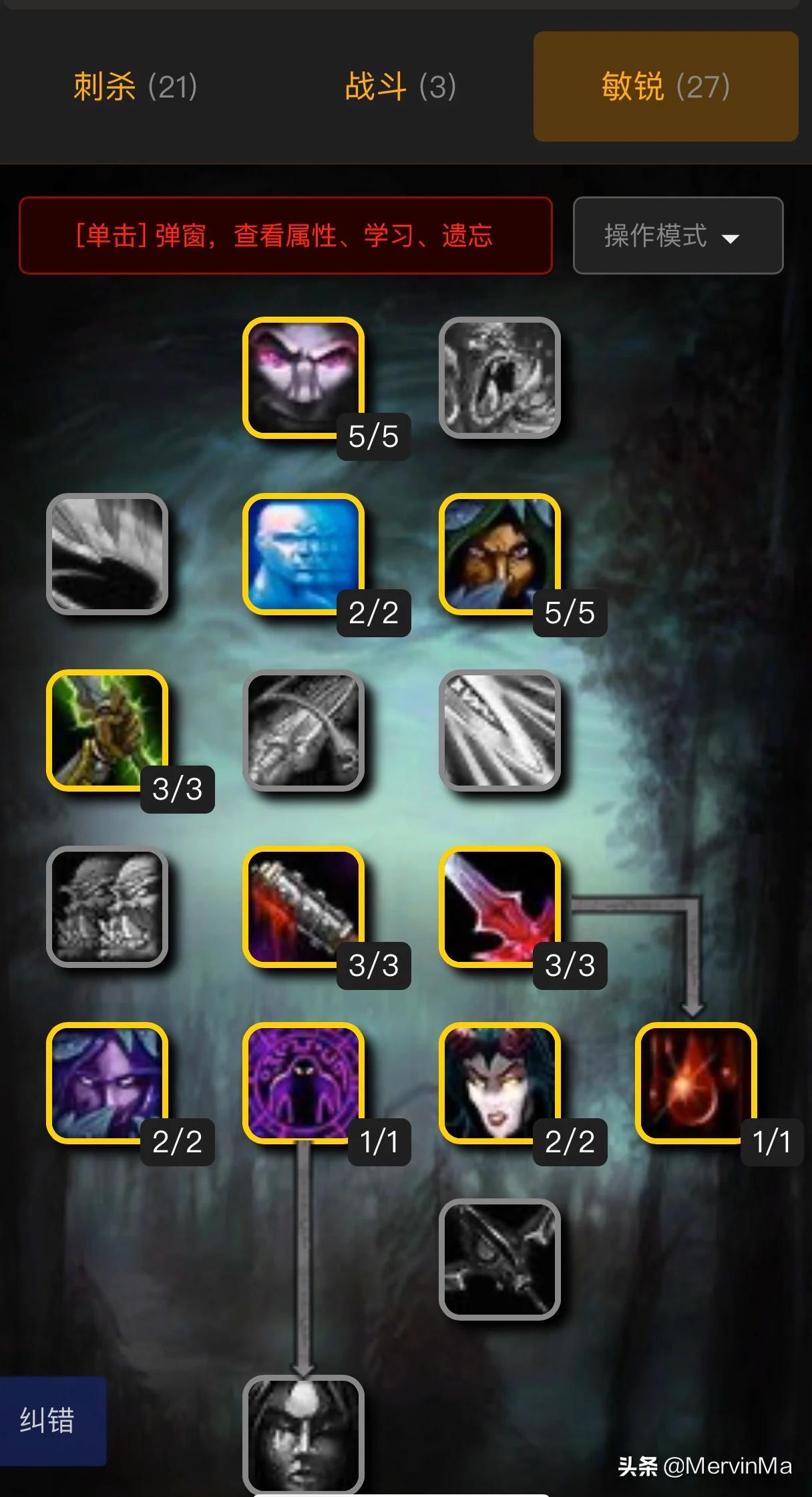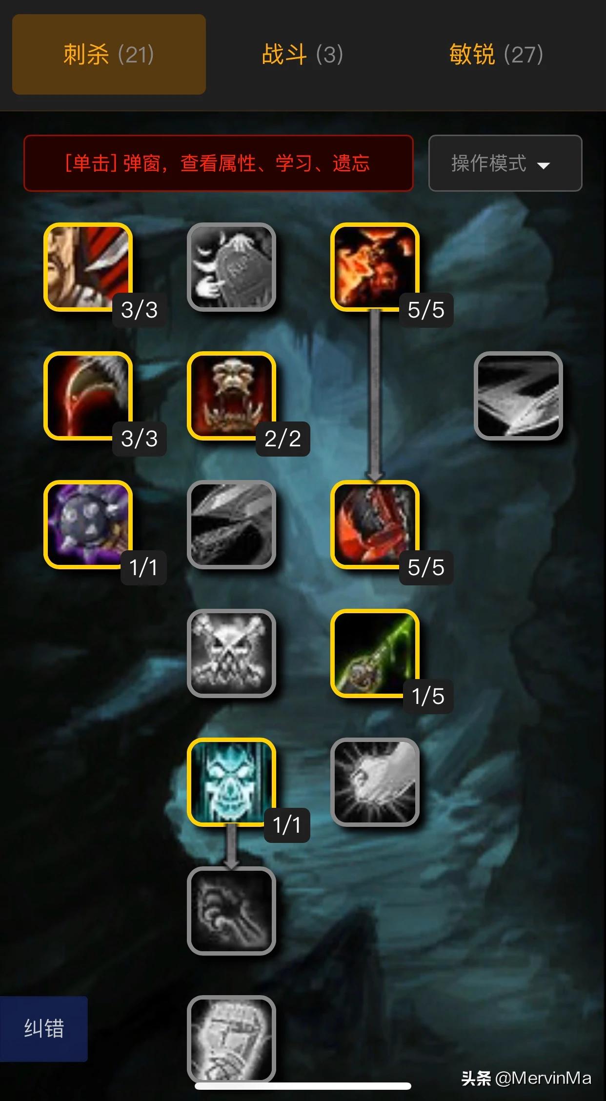 2. 在敏锐套的基础上,可以配合刺杀天赋进行优化。