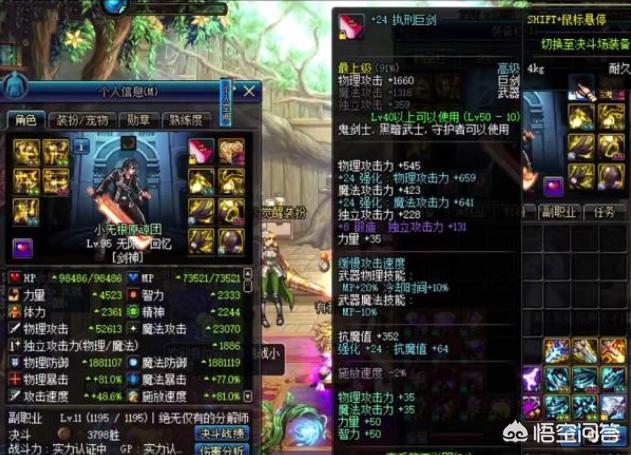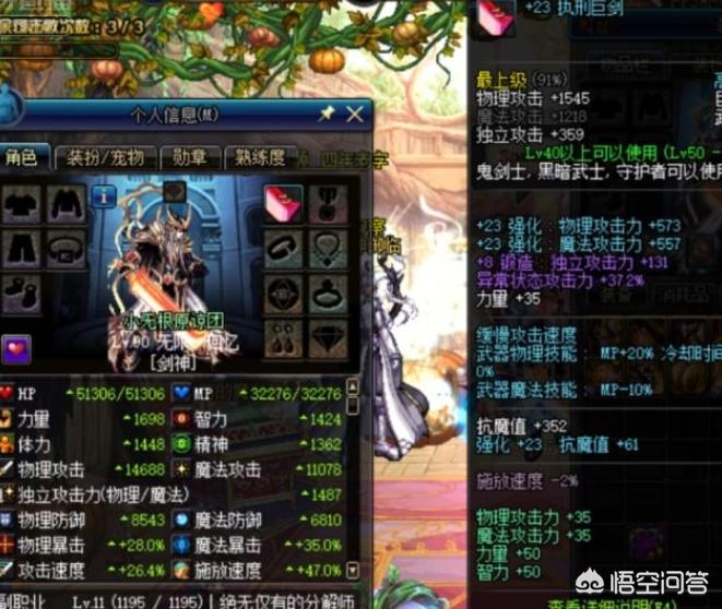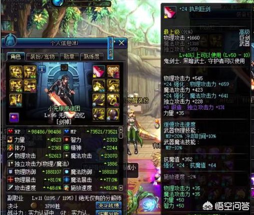 从截图中我们可以看到,角色装备上24的执行巨剑显得非常霸气,如果把这件武器放在DNF的60版本,那绝对是一把神兵利器。可是时过境迁,如今的DNF已经是全民红字的时代了,再加上强化改版,无视防御的机制已经没有了,所以这把24的执行巨剑只能算是一件玩具而已。