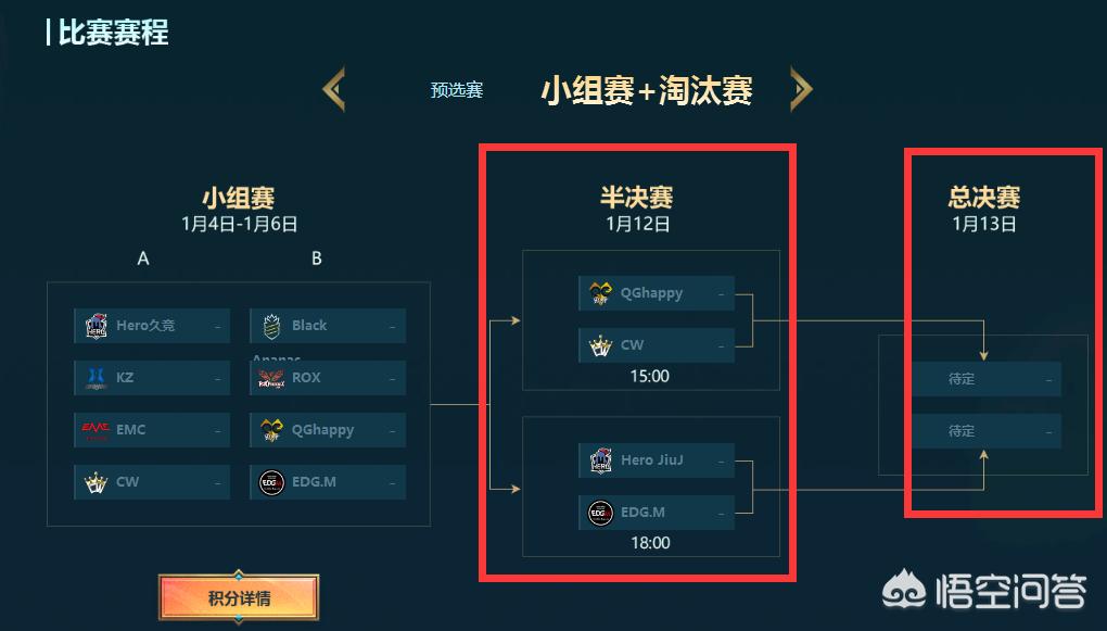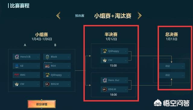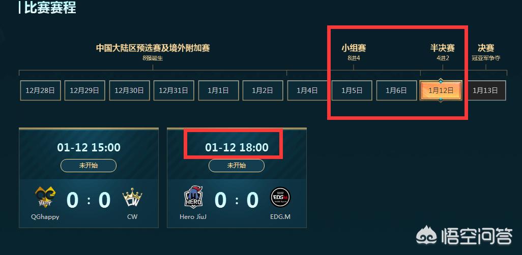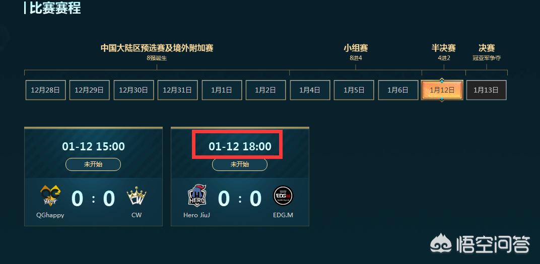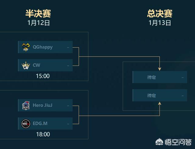半决赛12号,总决赛13号,正好是周六周日,这也是考虑到了观众们的时间,周末可能比较有时间看。12号两场比赛,下午3点是QG打CW,第二场6点edgm打hero,估计晚上10点多能够打完比赛;打决赛的队伍确定之后,第二天就是两支队伍争夺冠军。