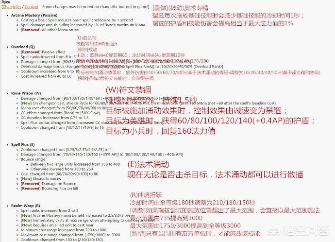 在这一次的瑞兹重做中,多得我就不细说了,各位召唤师都能够从各种渠道了解到详细情况。我就抓一下重点,跟各位召唤师讲解一下。1、瑞兹远古被动回归,如果有玩过老版瑞兹的老玩家,肯定对这个被动不会陌生,那就是瑞兹每使用一个小技能,会让其他小技能CD减短1秒,并且技能造成伤害会提升最大法力值。2、W的禁锢效果取消,改为减速。但除非对方身上有E技能的被动,那么就可以禁锢敌方1.5秒。但这在实战中,无疑对瑞兹的作战能力大大削弱,因为你再也无法直接闪现W禁锢定人了!