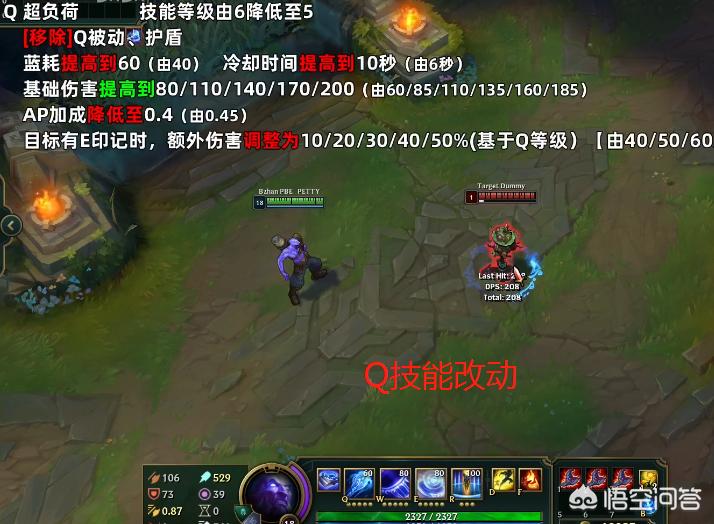 Q技能:蓝耗提升、CD延长、ap加成降低。