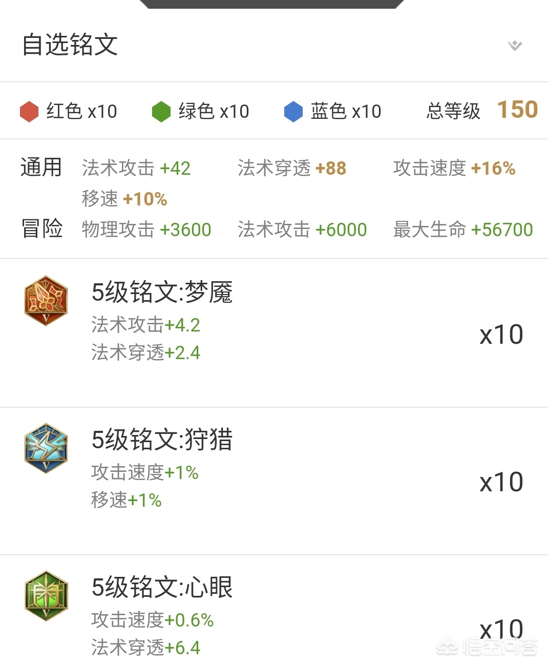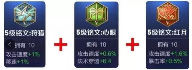 这套是露娜标准铭文,攻速一共+32%,让露娜平A刷月光的手感很舒服,另外,更高的攻速能让露娜前期打野效率更高。除了露娜以外,这套铭文给嬴政使用也很厉害,因为嬴政普攻伤害很高,而且是穿透伤害(相当于小aoe)。