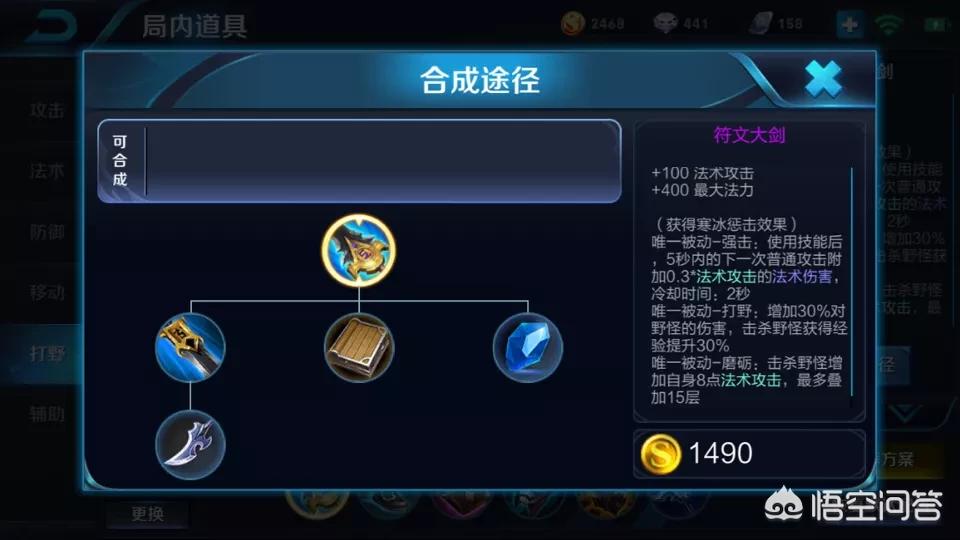 第一件装备选择符文大剑肯定是没什么争议的。这件装备对于前期露娜的刷野速度和等级提升都是有所帮助的。法强和魔量都是露娜前期所需要的。而它的被动又非常契合露娜,基本上能一直触发。