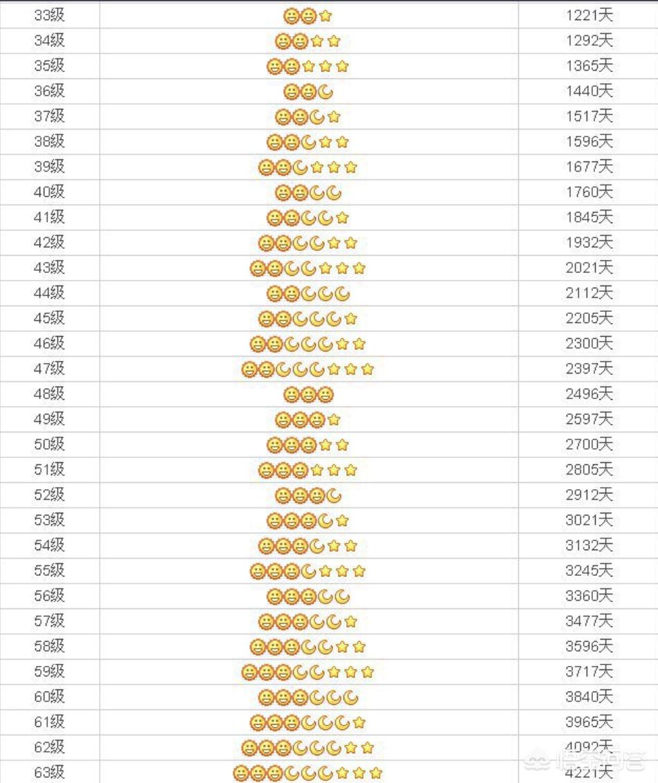 最早是以小时来计算的,那段时间,绝大部分QQ用户都在挂QQ,之后就有不少媒体指责其浪费能源,在有关部门的介入下,腾讯公司将QQ等级变为以天为单位,每天只要在线两个小时就算一天。 半小时以上、两小时以下则记为半天。QQ等级一开始是星星,4个星星等于一个月亮,4个月亮等于一个太阳,4个太阳等于一个皇冠。
