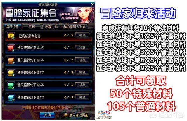 DNF地下城与勇士在5月17号西海岸体验服持续更新优化了冒险家归来的活动,这次更新中修复了上次更新这个活动时,活动页面都是红叉只能看商店的Bug,也就是修复了红叉的问题。