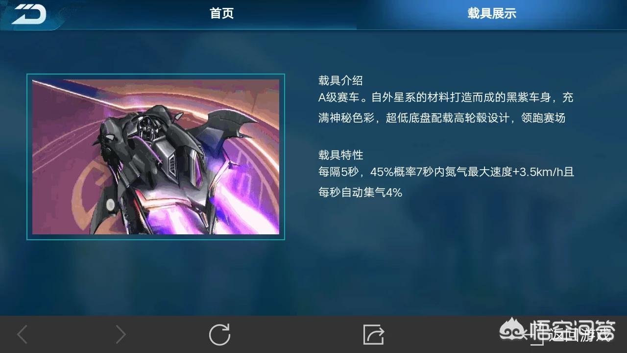 这款车的外表极为炫酷,拥有紫色的喷口火焰且六维图也非常出色
