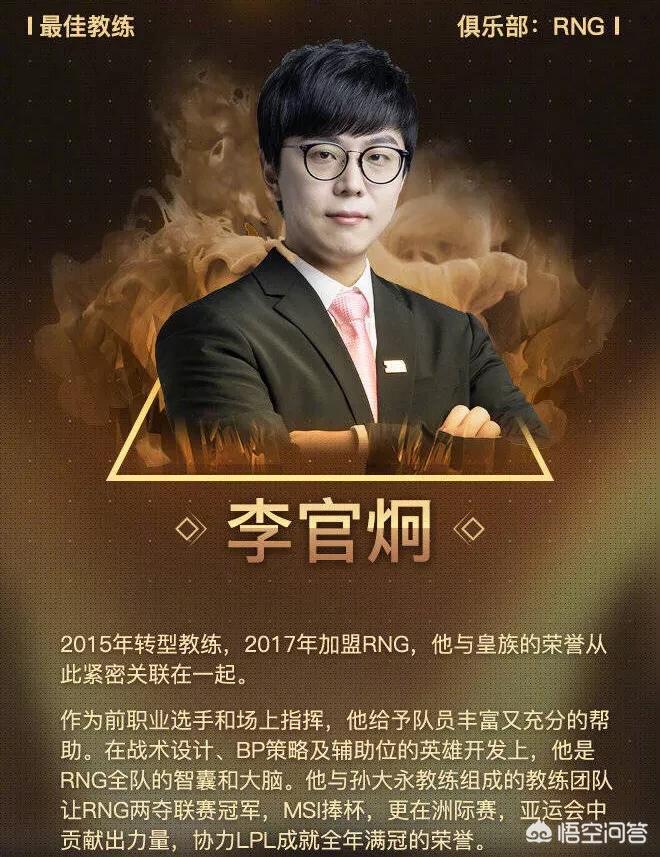 说起RNG的教练,最让人印象深刻的就是风哥了,风哥的成名之处就是“风之BP”,他在BP阶段敢选敢拿,尊重选手的选择,敢于让选手尝试,他的摇摆BP法曾让很多战队表示头疼。同时他还关心队员,在麦克风里听到的最多的就是他在安慰队员,让他们稳住心态。在S7全球总决赛败给RNG之后,还亲自上台搂着伤心欲绝的麻辣香锅下台。