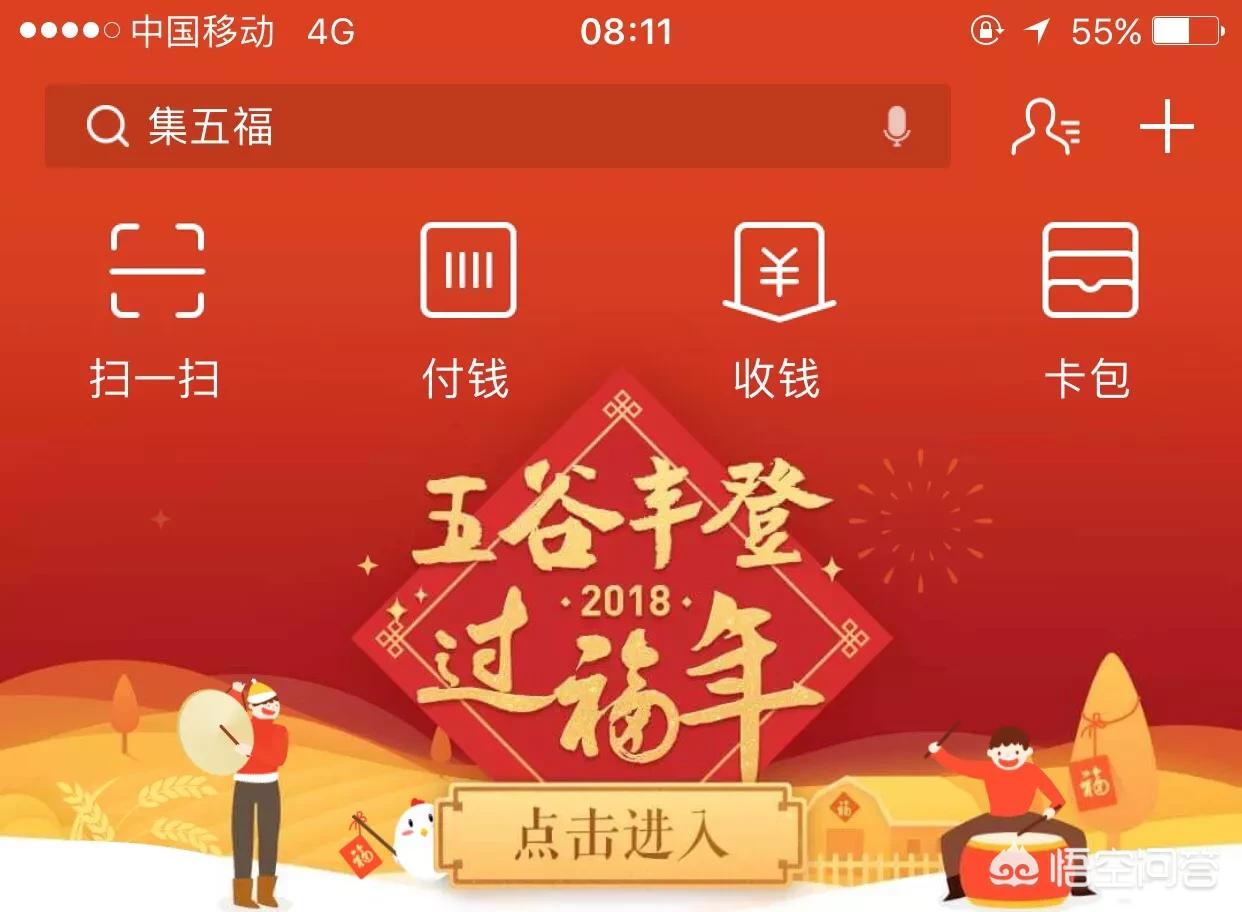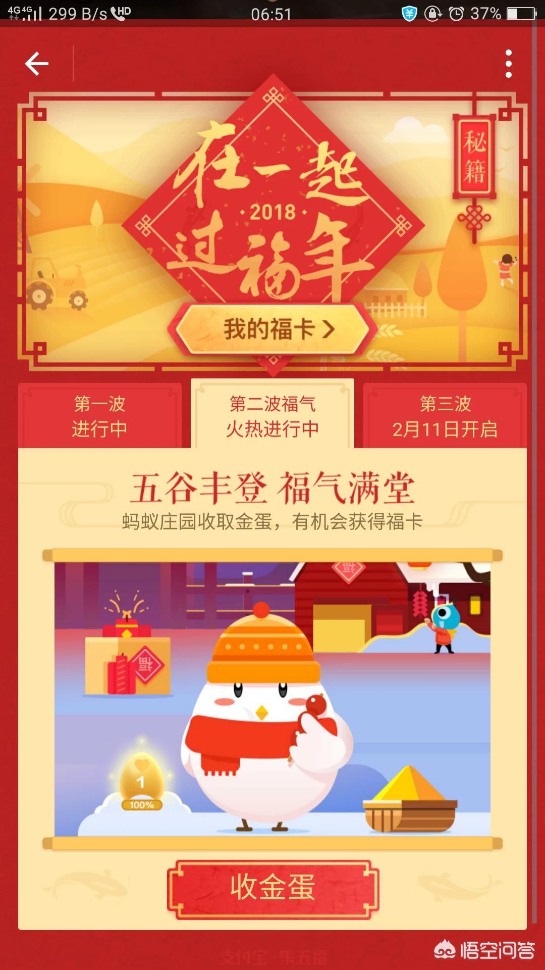 1.首先打开支付宝进入首页,找到“2018五谷丰登,过福年”这个主题页面,点击进入