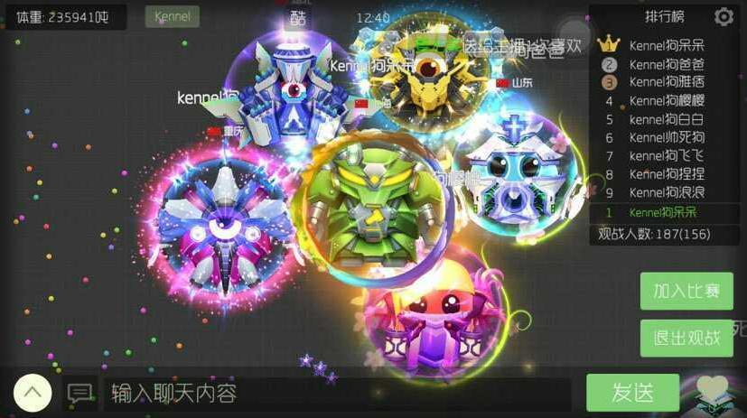 首先游戏非常简单,简单到上手即会。玩家只需要通过触屏移动控制游戏中的圆球吃场景中的小球来使自己变大,同时躲避比自己强大的角色进攻,尽量吃掉比自己小的角色让自己变大。不过自身越大,移动速度就越慢。随着你实力的增强,球会越来越大,游戏设计了两种方式来帮助你“减肥”。一种是放弃一部分让自己变小,另外一种方法就是把自己分成多个小部分。而且游戏还支持语音。虽然说游戏的内容不多,但是真正玩起来玩法还是很多的。及时的削减自身的部分可以提升移动速度利于逃跑,在团队战中还可以帮助同伴加强实力。如果球实在是大的无法移动了,不妨试试分身,同时控制多个球分兵攻伐也是个不错的选择。