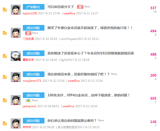 去年我迅雷会员到期后就不在续费了,为啥呢!就是因为会员都不能高速通道和离线下载。我做迅雷会员至少有5年了,会员到期前等级是白金会员。去年迅雷论坛上大量会员反馈高速通道无速度以及离线下载无法使用(见下图),而迅雷官方对此并无特别解释说明。