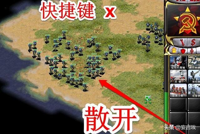 4、比如我们选择了士兵后,可以使用X键让所有的士兵都散开。