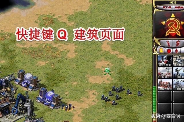 Q、W、E、R,分别可以切换到:建筑页面、武器页面、步兵页面和车辆页面。