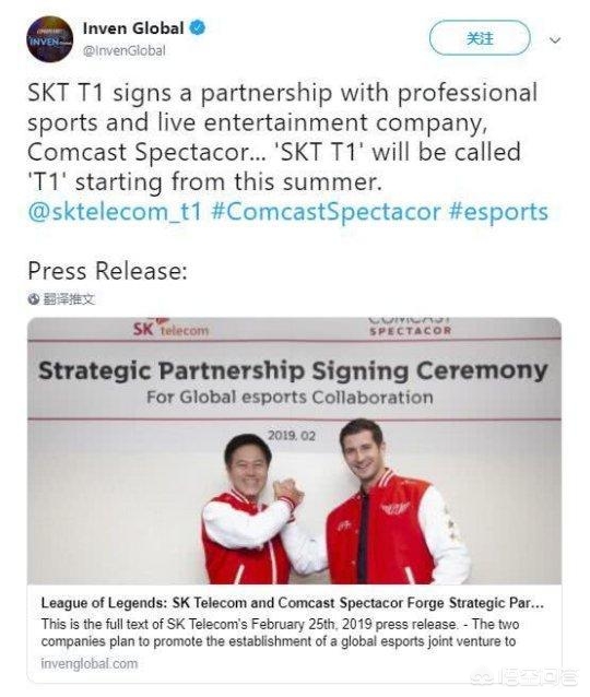 据ESPN消息,LOL王牌俱乐部SKT T1的母公司——韩国电信巨头SK Telecom将与OWL费城融合队的母公司Comcast Spectacor完成战略合体。此次合作,英雄联盟SKT战队保留了队员,但队名被修改:“SKT T1”将从 SKT改名为T1。