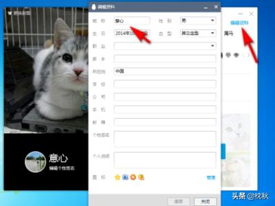 4、点击qq面板头像,进入到个人资料窗口,点击“编辑资料”