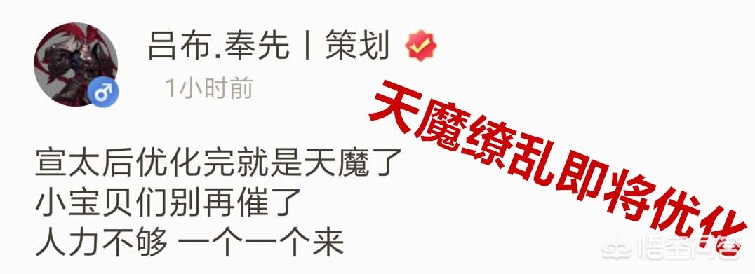 所以很多人都想到了吕布的天魔缭乱皮肤,要求官方将这款皮肤也优化一下,毕竟是一款限定皮肤,品质也是比较高的,如果能够再优化一下,应该会更受玩家欢迎,而策划也正面回应了这个问题,称羋月的大秦宣太后皮肤优化完就会对天魔缭乱进行优化,希望大家不要再催进度了,现在官方人手有些不够,应该一个一个来,这也算给吕布玩家一颗定心丸,很多玩家也都纷纷调侃,如果人手不够,自己可以参与到优化之中。