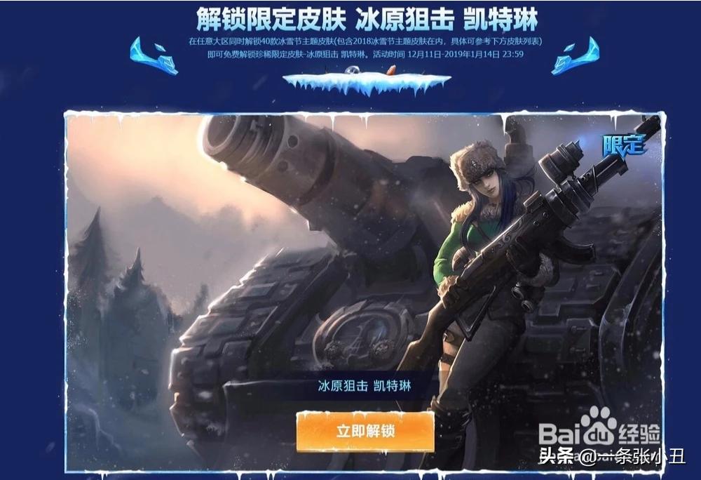 1、冰原狙击凯特琳在冰雪节活动中,玩家可以进行直接领取,但是需要满足冰雪节皮肤的收集条件。