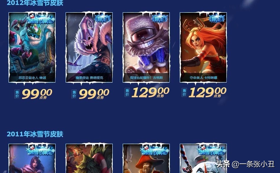 4、在游戏中,冰雪节活动皮肤每年一般是3-4个,价格一般在12900点劵以内,多数都是7900点券左右。