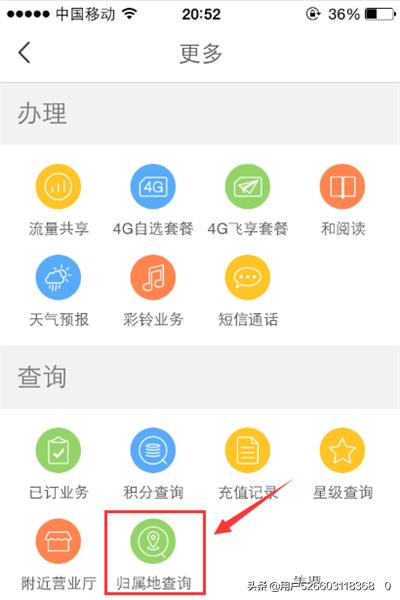 5、在当前界面“查询业务”中的“归属地查询”进入。