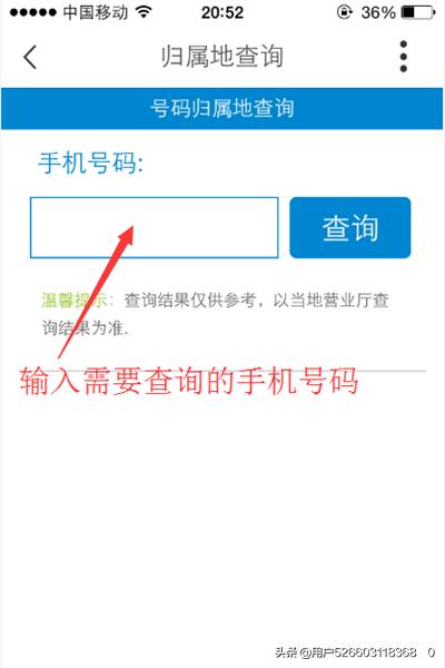 3进去号码查询页面,输入想要查询归属地的电话,点击 查询 图标,如图所示,就可以查询到来电归属地了。