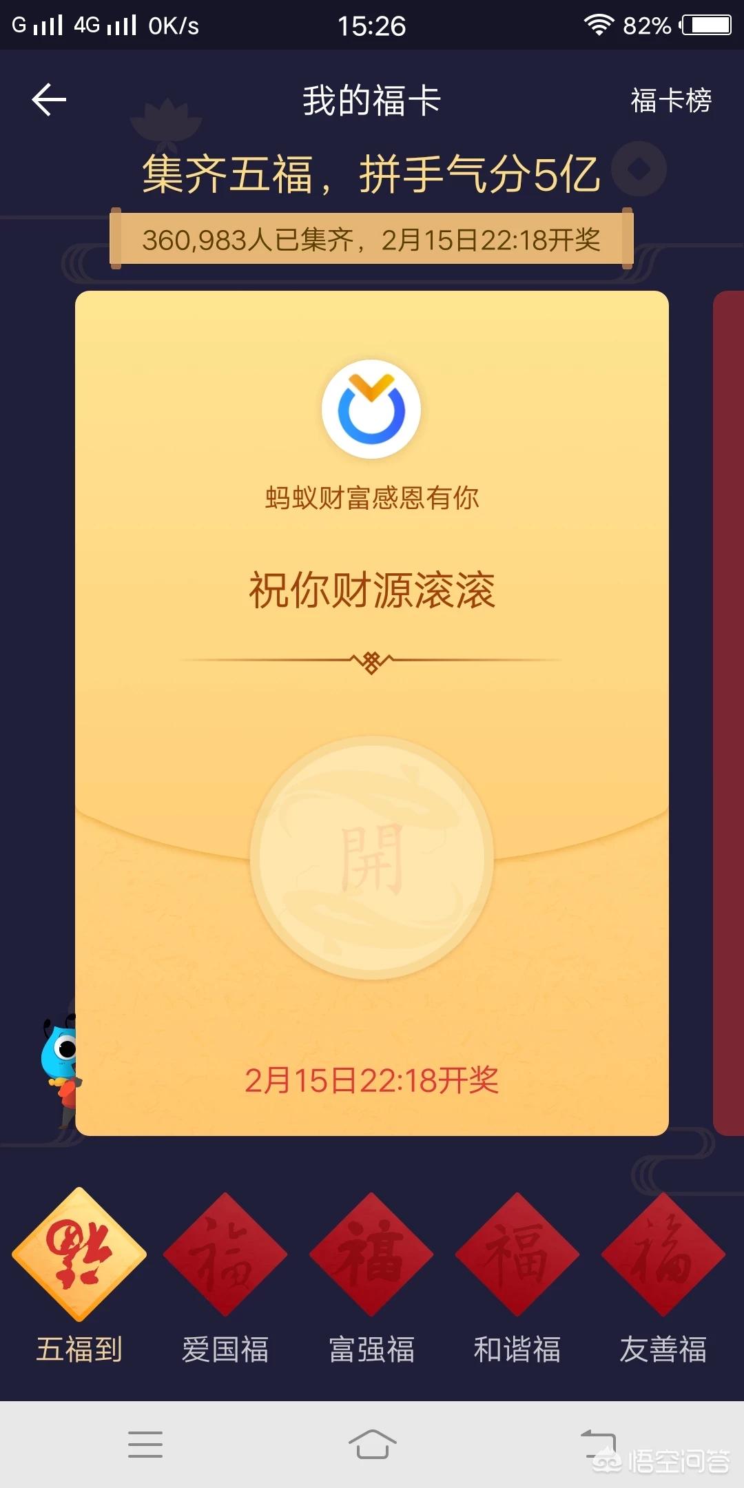 多余的福卡留着也没用,基本朋友有需要就赠送了。不过朋友求敬业福的实在太多,我就多余一张,为了不顺得哥情失嫂意,只好随机抽取赠送,中得敬业福的好朋友高兴的秒合成五福,发朋友圈炫耀,坐等除夕夜开奖。