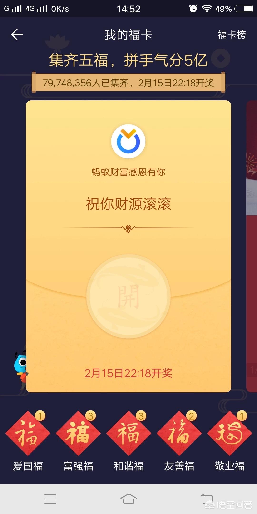 自知的朋友有集齐4套的哦,可见只要你能集齐所有福卡,都能合成,不论几次,其实最难得的便是敬业福了,只要你敬业福够多,其他福卡都应该没问题,跟朋友凑凑都会有,小伙伴们抓紧时间去凑福吧,没有限制的哦