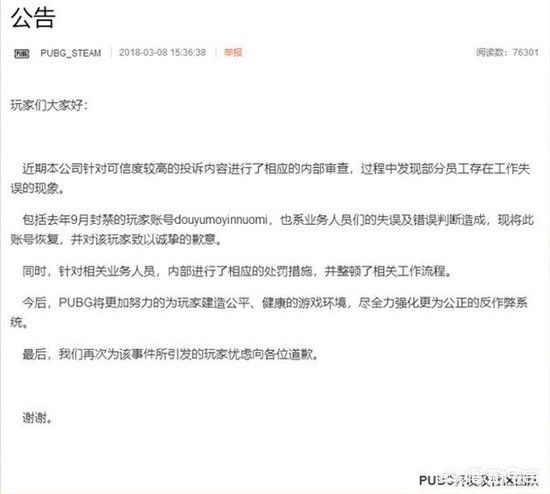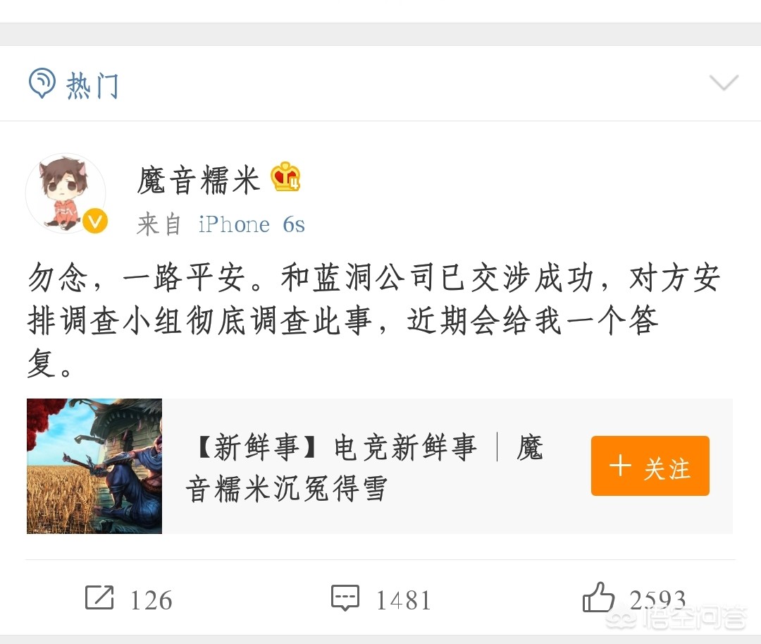 今天下午,蓝洞官方发布了微博称,糯米账号被封,是蓝洞官方内部人员的工作失误,其实糯米没开挂,蓝洞冤枉他了,他被封的账号也被解封了,蓝洞官方也向他进行了道歉。