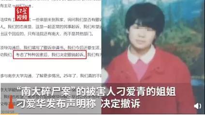 在2016年的时候,网传到了20年的刑事追诉期,但很快被警方辟谣,警方将继续追查下去。然而到了2021了,经刁爱青家人的同意,决定撤诉。南大碎尸案撤诉也是一件好事,因为案件年代久远,缺失关键的证据,再查下去,反而浪费了社会资源。