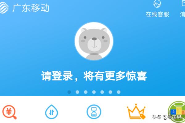 4、安装完成后,点击图标进入APP,点击上方的登录按钮。输入自己的广东移动手机号码并获取验证码登录。登录成功后,即可进行相关业务的查询与办理。
