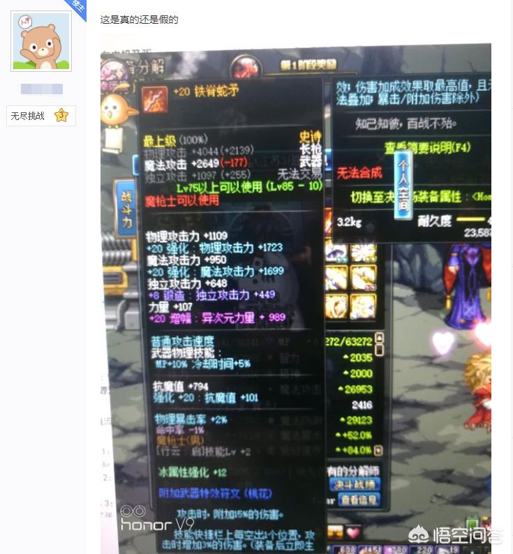 DNF玩家发现增幅20铁脊蛇矛,物攻加成1723异次元力量加成989,这是真的吗