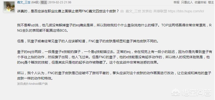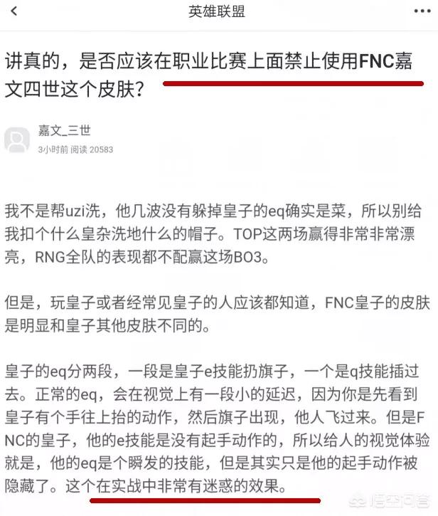 这个玩家首先表明了自己的态度“我不是帮uzi洗,他几波没有躲掉皇子的eq确实是菜,所以别给我扣个什么皇杂洗地什么的帽子。TOP这两场赢得非常非常漂亮,RNG全队的表现都不配赢这场BO3。”然后讨论的是这个皮肤的皇子EQ问题,是这样说的: