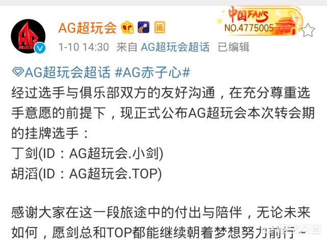 在1月10日下午2点左右,AG超玩会官宣转会期挂牌选手名单,这一次一共有两名选手挂牌。而值得一提的是,这两名选手刚好都是原BA黑凤梨的选手、其中有一位还是我们比较熟悉的,是BA黑凤梨元老级选手,他就是小剑。另一位则是在770出走之后顶替辅助的TOP。