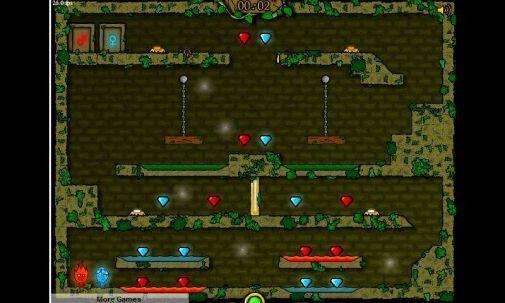第二个游戏是冰火人,是两个不同的游戏角色冰角色和火角色一起闯关的故事,如果是需要完全闯关成功的话,还是要两个人一起合作,总是有那种我踩着这个开关你去拿一个东西或者是你去穿过这个地方再反着帮我踩着另一个开关这样子的情节。虽然是一种单机小游戏,但是玩着玩着就感觉很有趣,就算是玩了一天也不会觉得很厌烦,并且就算是总是闯关失败,也总是想着自己下一次一定可以,所以总会想着自己再试一次呢!所以就是这样子的想着,一会的功夫就过去了,就这样子一天的时间也可以在玩这个游戏上面慢慢的过去呢。