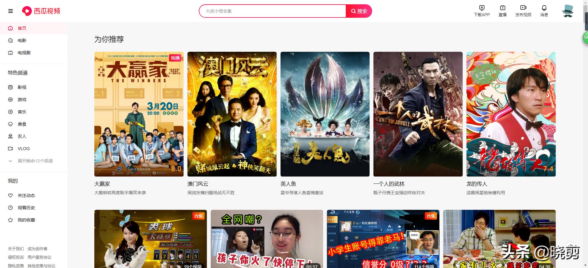 1.影视下载的手机软件APP有:西瓜视频、腾讯视频、优酷、爱奇艺,这些都是手机软件常用有名的软件,有些是需要收费的,有些也是免费的,本人常用的也是这几个软件,用着也很不错,也非常好用。