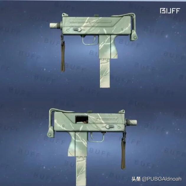 MAC-10这把枪射速飞快,而且还很便宜,是前期rush的神器,冲浪木这个皮肤非常非常的便宜,崭新出厂的才不到一块钱,这个皮肤涂装看起来有种小清新的感觉,深浅不一的绿色和上面白色的裂纹,让整把枪看起来就像是一块玉石,我还是非常喜欢这种清新风格的皮肤的。