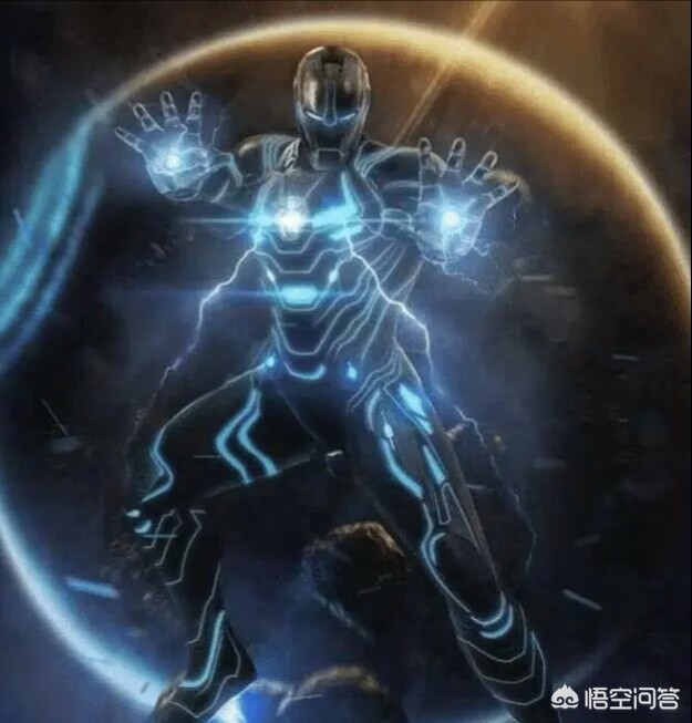 第三套多元天神组装战甲:这里的托尼和浩克宇宙之中发现了一具天神尸体,他是被灭霸杀死的,不过这具天神尸体其实是一具通过强大思维能力控制的战甲,里面的意识已经死去,托尼接手直接把天神组装战甲直接改造了,变为图片上蓝黑形态的超神级战甲,对付灭霸终于能够抵抗。