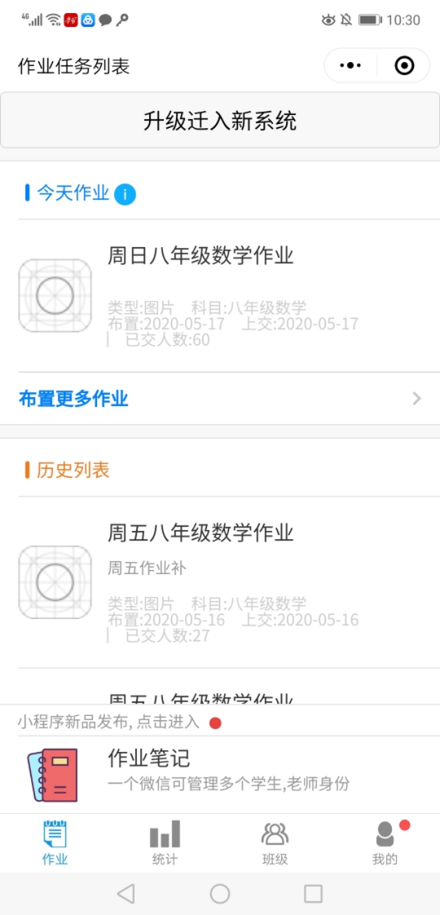 1微信里有一些小程序可以发布作业。如“老师收作业”,教师可以布置作业到多个班级群,同时设为群待办,可及时收到学生作业的完成情况。利用统计功能可显示各班有哪些同学没有完成作业,批阅功能既可以勾画,还可以编辑评语,非常方便。缺点是只能单科老师使用,学生上传作业要打开多个小程序。